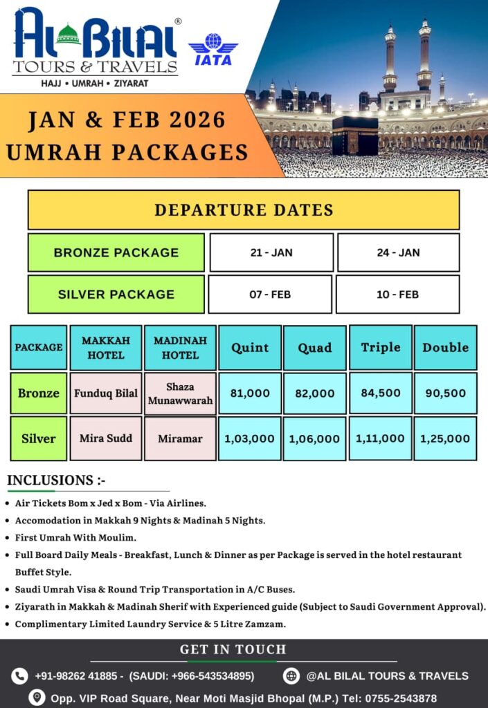 Al Bilal Tours & Travels ✈️ offers January & February Umrah Packages 2026, providing comfortable stays, guided support, and a smooth travel experience. Perform Umrah with peace of mind and devotion.